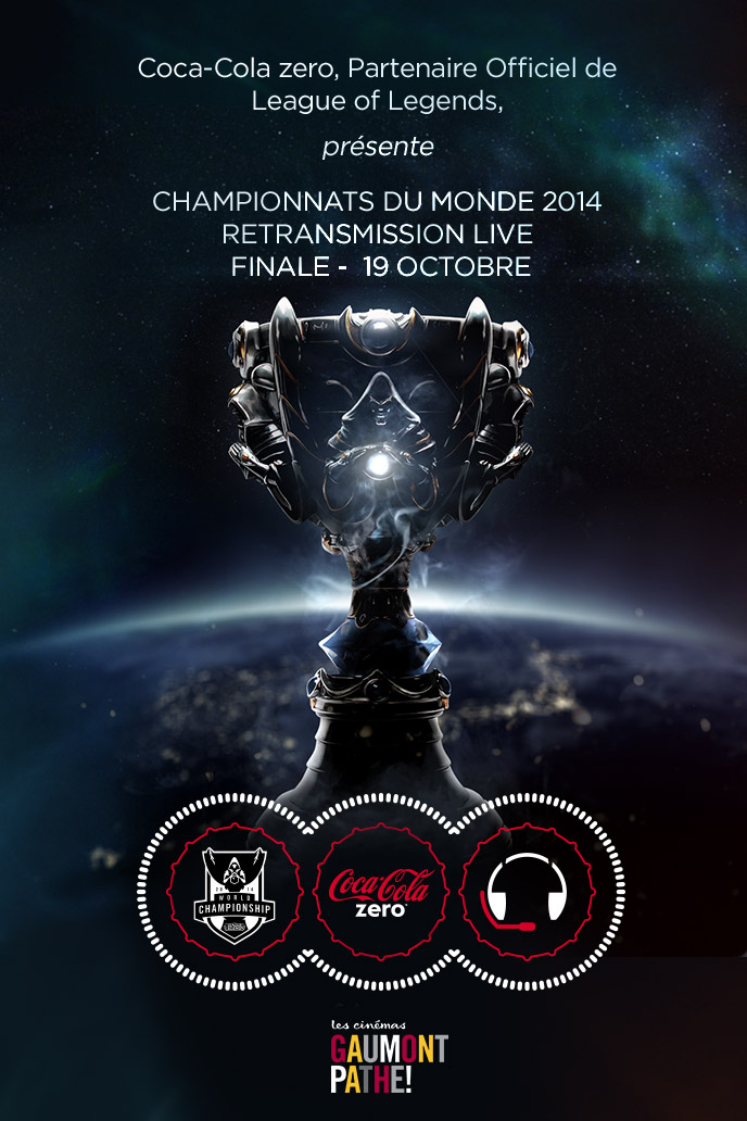 Coca-Cola Zéro, partenaire officiel de Riot Games, s’est associé à Gaumont Pathé pour retransmettre la finale dans certains cinémas en France. Oui, vous avez bien lu. Ainsi, il y aura le Pathé Quai d’Ivry à Paris, le Pathé Marseille Plan de Campagne et le Pathé Lyon Vaise à Lyon. Quoi de mieux que de regarder la finale assis dans un siège très confortable sur grand écran? D’autres pays seront également à l’honneur pour une rediffusion au cinéma tel que la Belgique.
