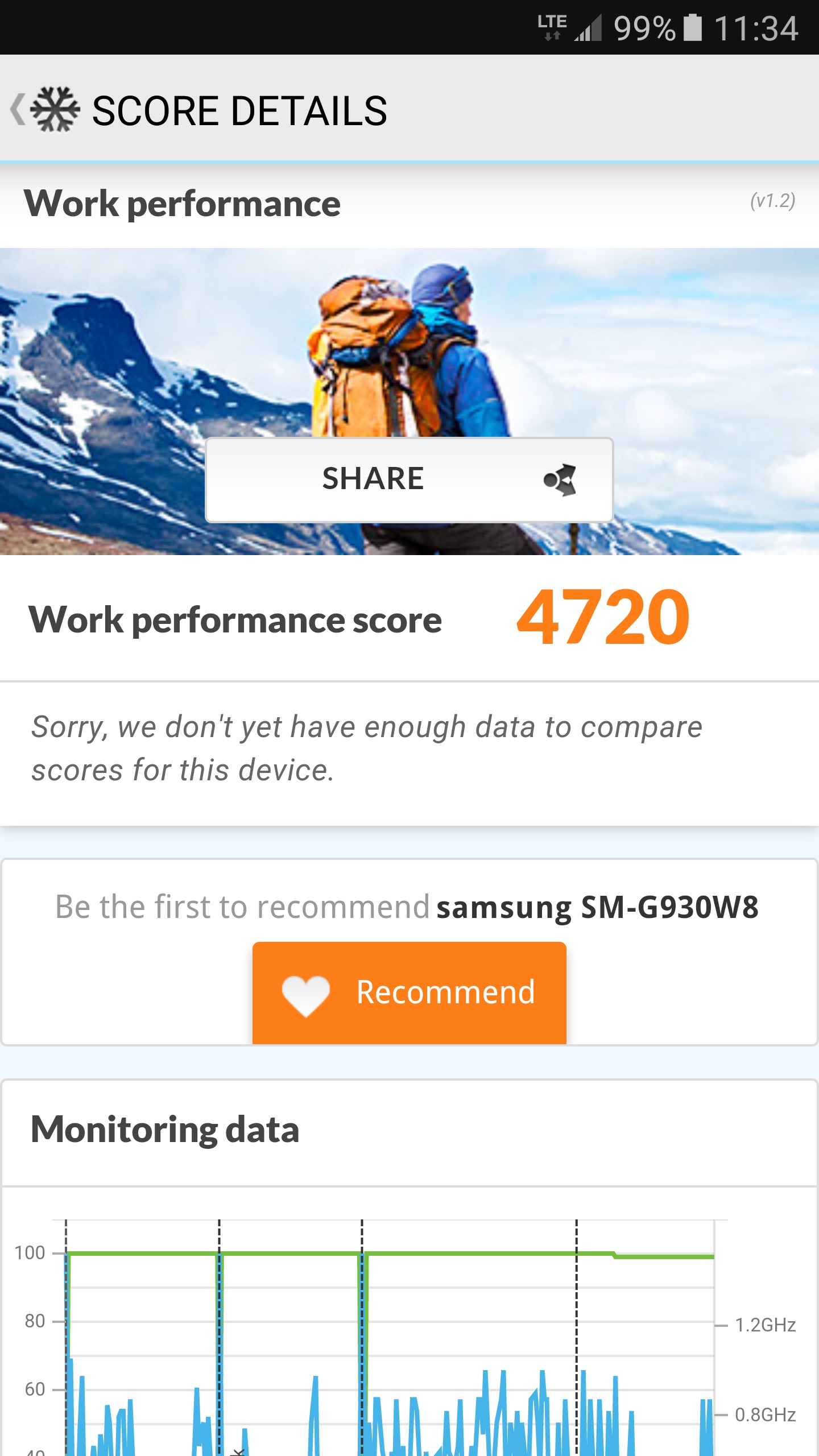 Dans ce dernier test, c’est le Samsung Galaxy S7, situé à droite, qui prend la tête, avec un score plus élevé lorsque tous les coeurs sont utilisés. Le résultat n’est pas surprenant, lorsqu’on sait que le processeur du Samsung est équipé de 8 coeurs, contre 4 pour le Snapdragon 820 du LG. Lorsqu’un seul coeur est sollicité, le LG G5 se débrouille cependant mieux, avec un score de 2288 contre 2063 pour le Galaxy S7.