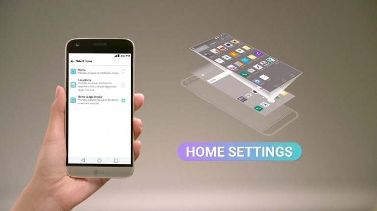 En effet, dans une vidéo consacrée à l’UX 5.0 avant la sortie commerciale , on découvre un mode qui permet de réellement retrouver un tiroir d’applications sur le LG G5. Vous pouvez directement aller à 2:15 dans la vidéo pour voir l’option « Home & app drawer » se rajouter au bureau par défaut du LG G5 et au mode simplifié « Easy Home ».