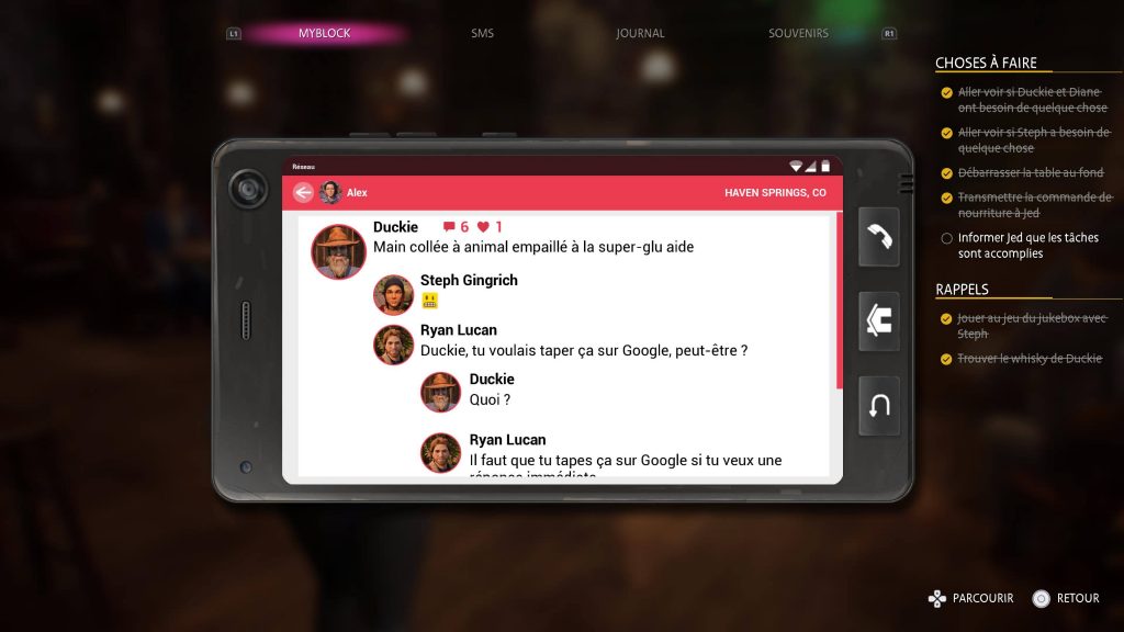 Life is Strange : True Colors n’est pas un jeu très long, en particulier si l’on ne se concentre que sur la quête principale. Par contre, il y a plein de choses à découvrir. Je me suis surpris à relire de vieux SMS d’Alex pour mieux cerner le personnage et de passer du temps sur « MyBlock » pour découvrir les gens de cette petite ville.