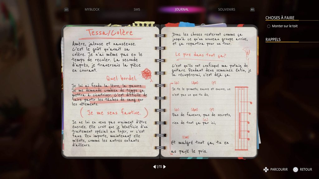 Finalement, il y a tout simplement le journal d’Alex où elle note toutes les émotions ressenties sur d’autres personnes et la cause de celles-ci. C’est très intéressant à lire.