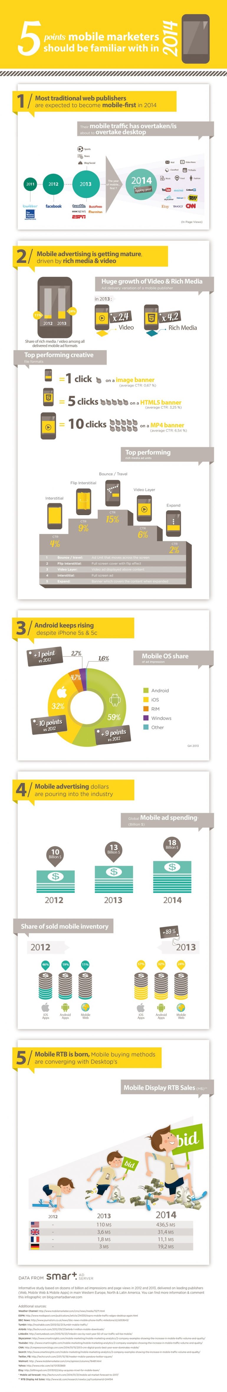 L’agence Smart AdServer vient tout juste de publier une infographie sur les 5 points importants qu’il faut connaître en 2014 quand on parle de marketing mobile :