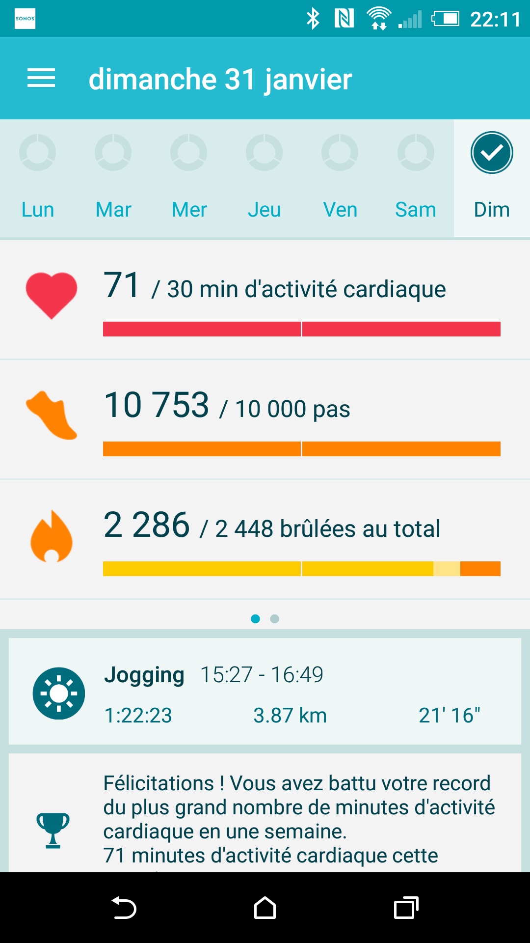 Il est également possible de partager les données recueillies avec des applications tierces, pour les amateurs de Fitbit, Strava, Mapmy, Under Armour Record ou autres Google fit par exemple. L’application n’a donc rien d’exceptionnel par rapport à certaines solutions concurrentes, mais de voir que le tout fonctionne très bien est agréable. On regrettera en revanche le fait que la seule activité possible avec le logiciel soit la course à pieds. Il est bien évidemment possible d’utiliser l’application pour de la marche, mais les autres sports ne sont pas prévus et n’offriront donc pas de statistiques précises pour le moment, ce qui est bien dommage.