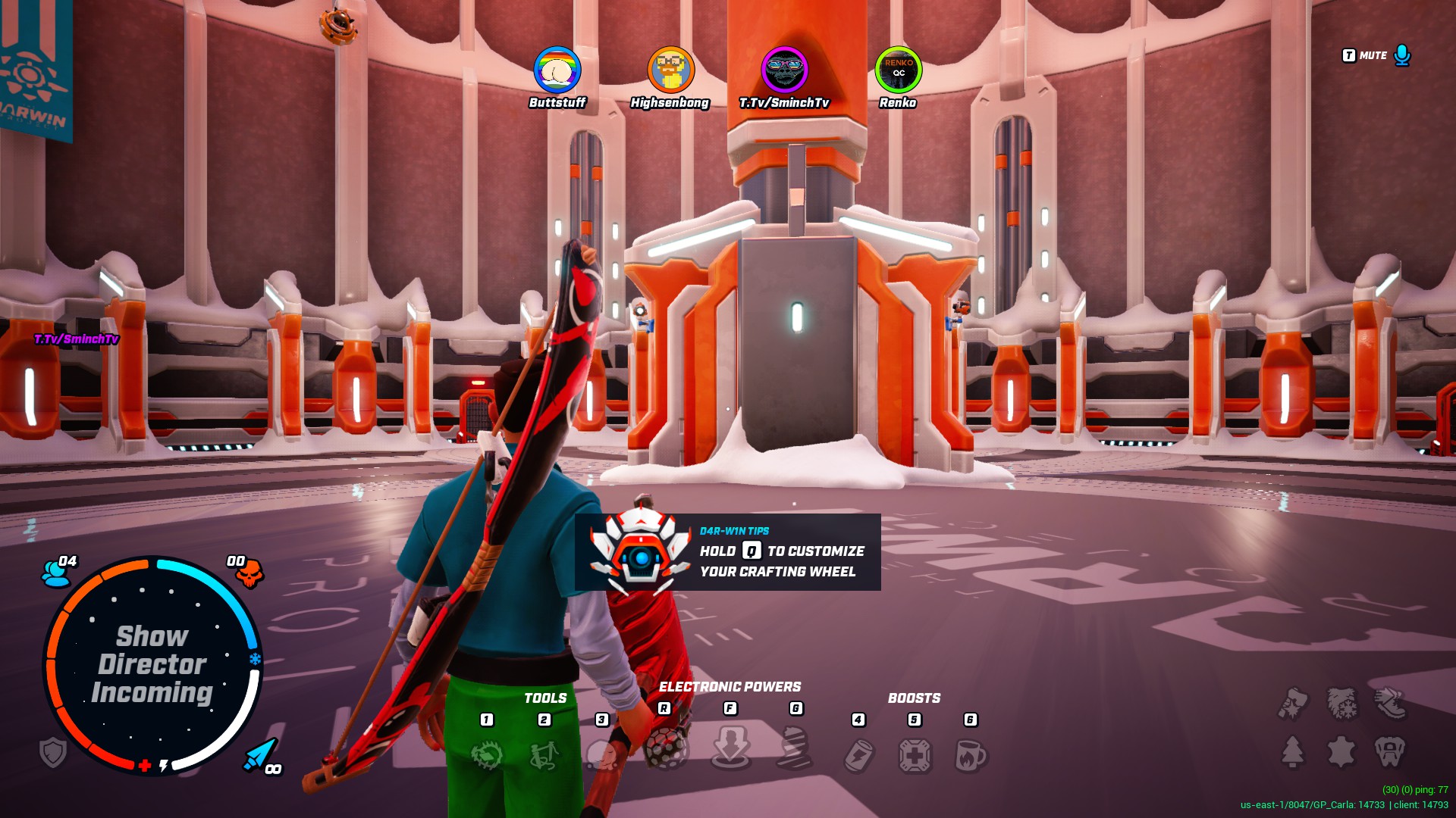 Le show-manager, représenté sous la forme d’un petit robot volant, a d’immenses pouvoirs sur le champ de bataille. Il peut vous sauver d’une mort in extremis en vous envoyant une dose de chaleur tout comme il peut envoyer une bombe détruire une section entière de la carte. Ce qui rend le tout encore plus intéressant, c’est qu’il peut entrer en contact avec les joueurs, échanger avec eux, leur donner des conseils ou avoir des exigences pour ne pas subir son courroux. Quand on tombe sur quelqu’un qui prend ce rôle à cœur, l’expérience est réellement trippante.