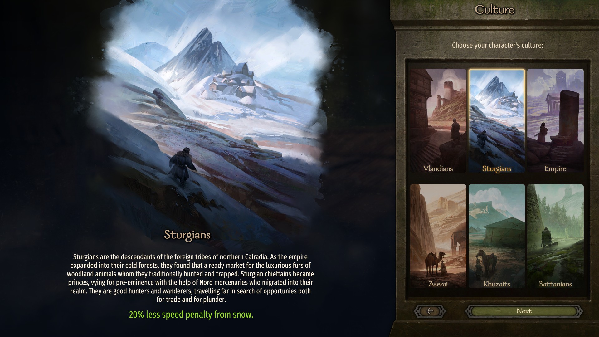 - Sturgians : Pénalité de déplacement dans la neige réduite de 20%.