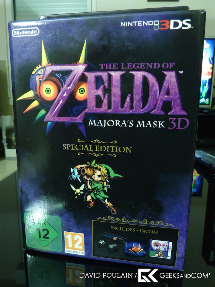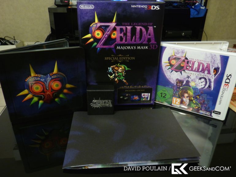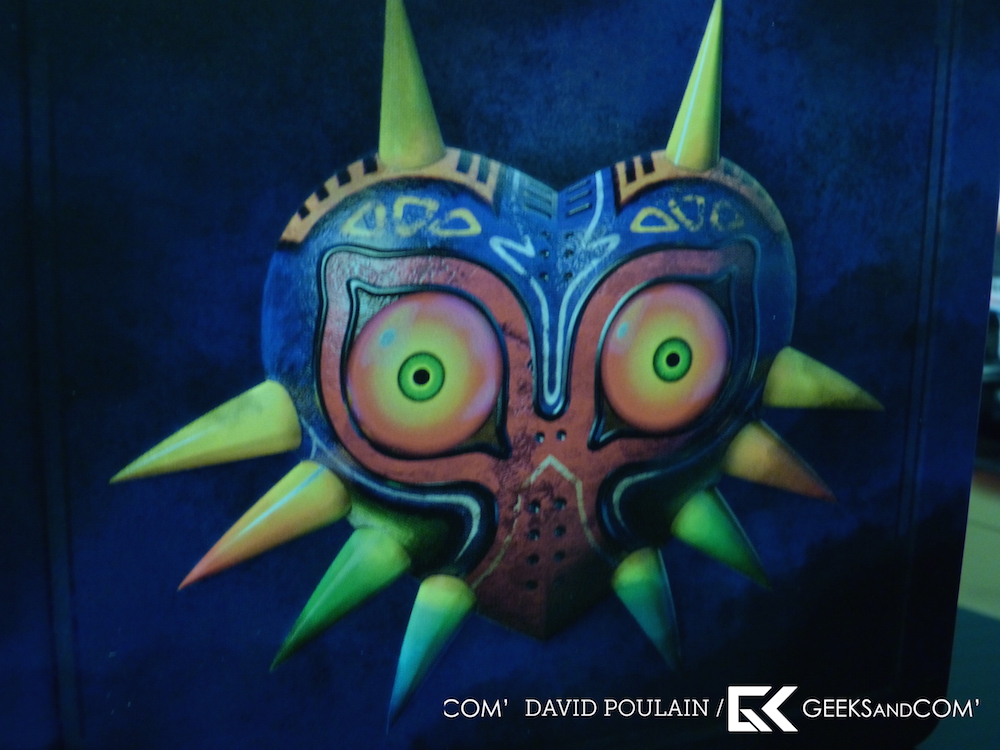 - Un boîtier steelbook (métallique) aux couleurs de cet épisode avec sur la face avant le masque de Majora, et sur l’arrière une fine illustration de Skull Kid. Ce boîtier possède de très belles finitions et un rendu de couleur vraiment saisissant.