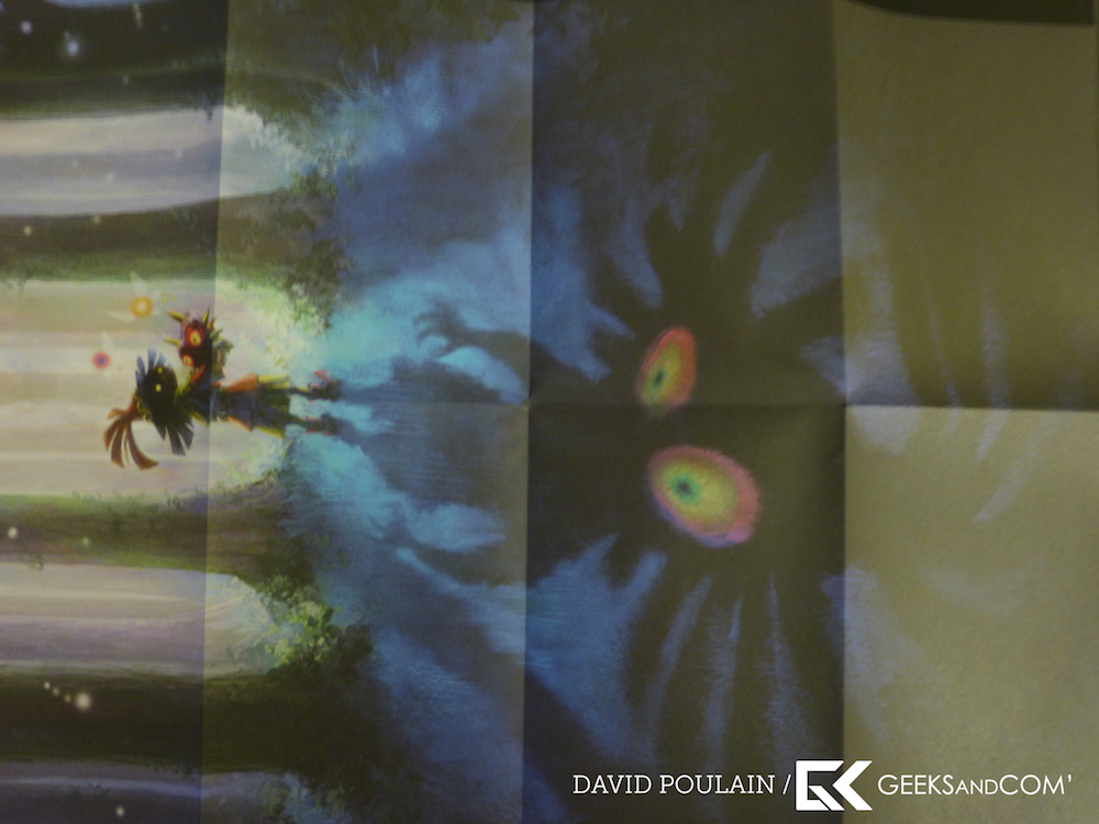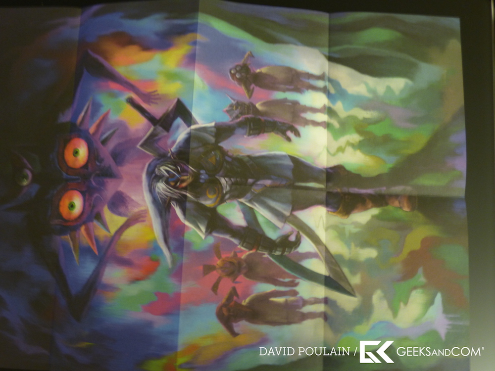 - Un double poster avec d’un côté Skull Kid, et de l’autre Link portant le masque de puissance des fées.