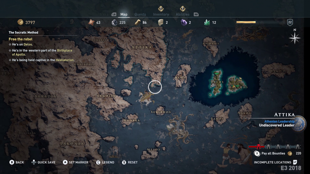Il a été invité par un groupe de rebelles qui a besoin de son aide pour tuer le chef du lieu, Pordarkes. Mais, comme nous l’a expliqué Jonathan Dumont, directeur créatif du jeu, l’affronter dès le début mène presque directement à la mort. Alexios doit donc faire baisser le pouvoir de sa faction en tuant les commandants ou d’autres ennemis, en coulant des bateaux aux couleurs d’Athènes, en brûlant les approvisionnements de guerre et en cassant les réserves d’armes.