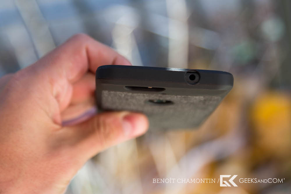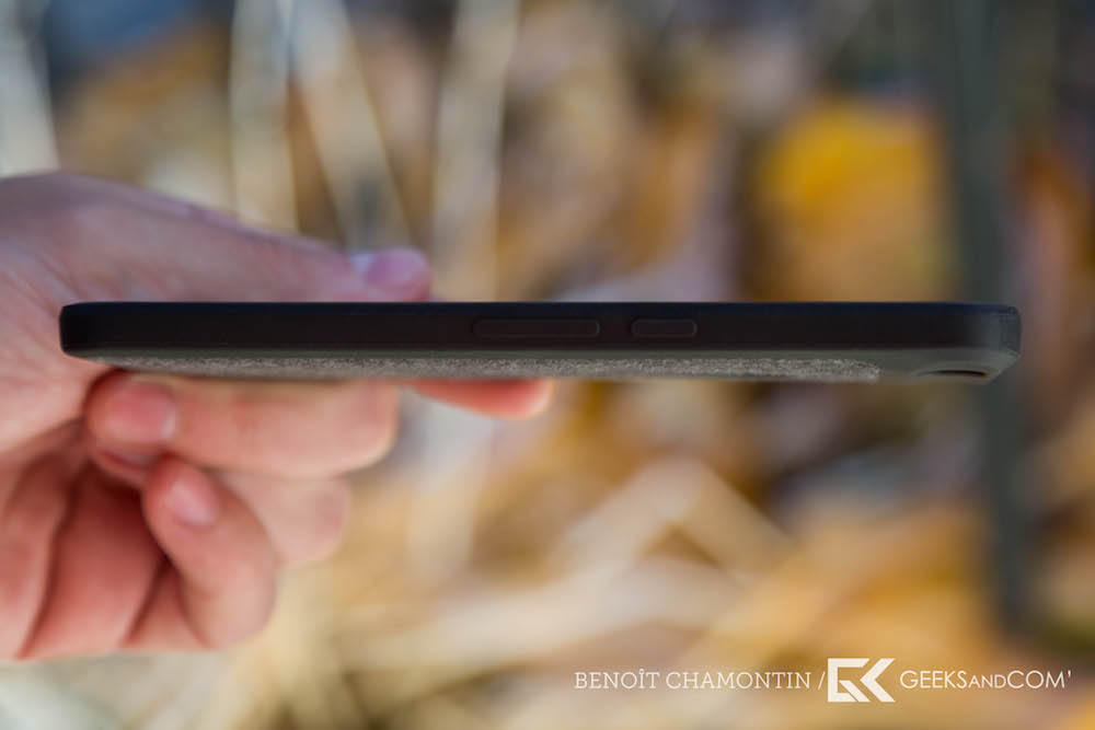 Petit détail remarqué sur notre unité, l’un des bords de l’étui avait tendance à être un peu trop flexible et bougeait légèrement lorsque l’on prenait en main l’appareil. N’ayant qu’un modèle, nous n’avons pas pu vérifier s’il s’agissait d’une exception ou de la façon dont est produit l’étui, mais cela n’était dans l’ensemble pas réellement gênant. Les boutons sont restés pour leur part très accessibles et agréables à utiliser même avec la protection.