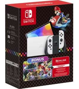 Un guide des Fêtes ne serait pas complet sans consoles! Les consoles actuelles sont assez avancées dans leur cycle de vie, ce qui veut dire qu’on peut se les procurer avec de jolis ensembles. En commençant par la Nintendo Switch OLED Modèle Mario Kart 8 Deluxe. Avec cet ensemble, non seulement vous avez la Switch avec le meilleur écran, mais aussi deux bonis hyper intéressants. Premièrement, vous aurez droit à un code du jeu Mario Kart 8 Deluxe qui est un des incontournables de la console, mais surtout un abonnement de 12 mois à Nintendo Switch Online. Vous aurez donc aussi droits à des classiques comme Donkey Kong Country, Mega Man V ou Gradius. La sélection de jeux NES, SNES et Game Boy compris avec l’abonnement est excellente.