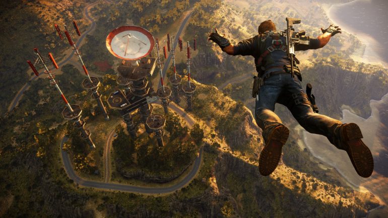 L’une des choses que l’on remarque une fois manette en main, c’est que c’est le digne sucesseur de Just Cause 2, que ce soit le système de visée, de déplacement ou de grappin, il a très peu changé, ce qui est bien dommage pour la visée qui reste très archaïque et peu précise. Rico peut toujours faire du base jump de presque n’importe ou et déployer son parachute mais cette fois il possède un wingsuit dont la physique est bien respectée. Comme le parachute vous pouvez utilisez le grappin pour rester dans votre élan.