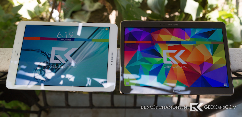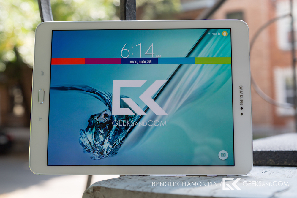 Samsung vient tout juste d’annoncer la deuxième version de sa tablette Galaxy Tab S au Canada, mais également en France qui se nomme tout simplement la Galaxy Tab S2 avec deux tailles d’écran disponibles. Nous avons une unité en main depuis quelques jours et voici nos premières impressions à chaud. Notez que dans cet article de prise en main, nous utilisons la Samsung Galaxy Tab S2 de 9″ et que nous la comparerons à la Samsung Galaxy Tab S 10.5″ (testée dans sa version 8,4″ l’an dernier sur Geeks and Com’ l’an dernier).