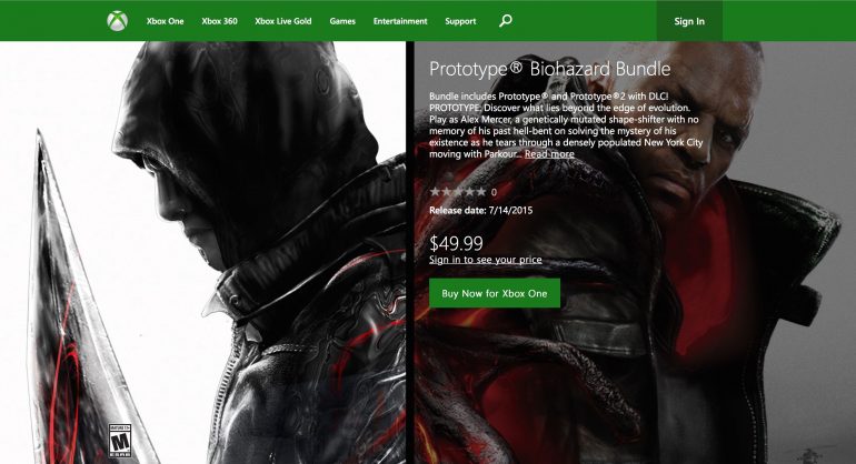 Il y a des sorties de jeux qui passent plus inaperçues que d’autres. C’est le cas des portages Xbox One de Prototype 1 & 2 qui sortent en bundle aujourd’hui. Nommé le Prototype Biohazard Bundle, il est vendu sur le Xbox Store au prix de 49,99€ en Europe et 49,99$ en Amérique du Nord.