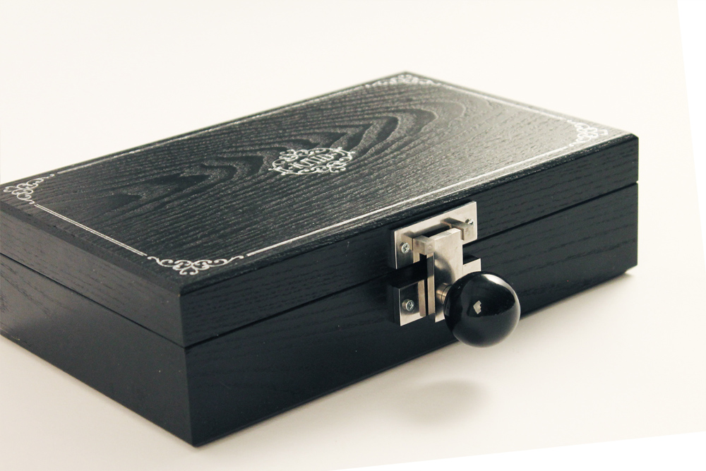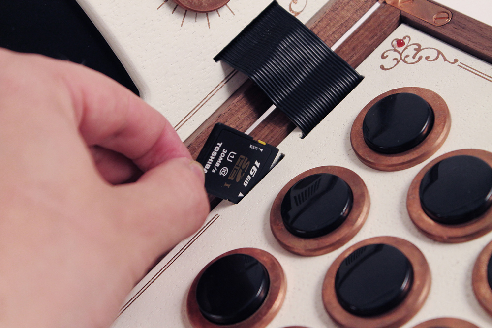 Proposée à 50 exemplaire par colori ( Dark Walnut / brass – Black Ash / brass – Dark emerald Green Maple / brass – Emerald Green Maple / white / brass et Walnut, white & brass), la console portable est fabriquée à la main dans un boîtier tout en bois.