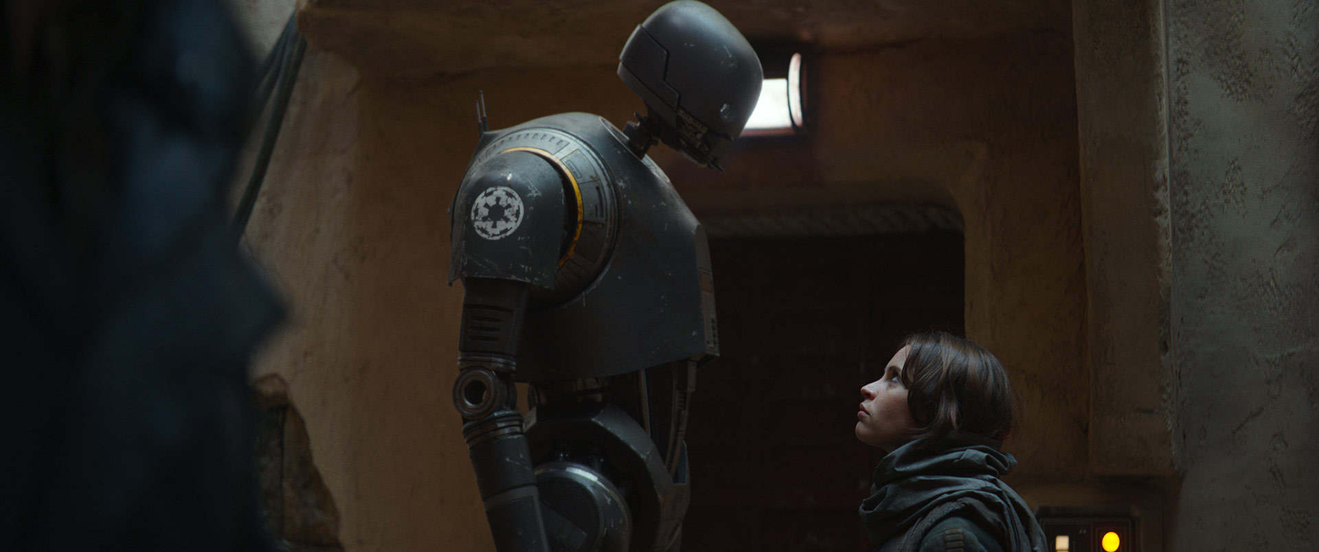 R : Notre film avait un problème assez singulier, assez original. D’habitude on part d’une idée et on ne sait pas comment va finir l’histoire. Et là, on avait la fin, puisqu’elle est évoquée dans un autre épisode de Star Wars, mais on n’avait pas le début. On a donc du prendre la problématique du film à l’envers. J’ai par exemple essayé d’éliminer tous les éléments de science-fiction du scénario pour essayer de traiter l’histoire comme si c’était un film historique. C’est quelque chose qui m’intéressait. Il y a un moment dans le film où l’on parle d’une super arme, comme une arme nucléaire et il faut que les héros arrivent à la retrouver avant qu’elle ne leur échappe. Et je me suis rappelé de mes années de documentariste à la BBC où j’avais rencontré et interviewé l’inventeur de la bombe atomique et j’avais pu être témoin de ses regrets face à cette invention. Ce témoignage-là est pour moi la source d’inspiration pour la création du père de Jyn. Dans les Star Wars, il est souvent question d’une relation familiale, de la rébellion par les enfants et c’est en reprenant cette colonne vertébrale qu’on a trouvé la solution pour notre film.