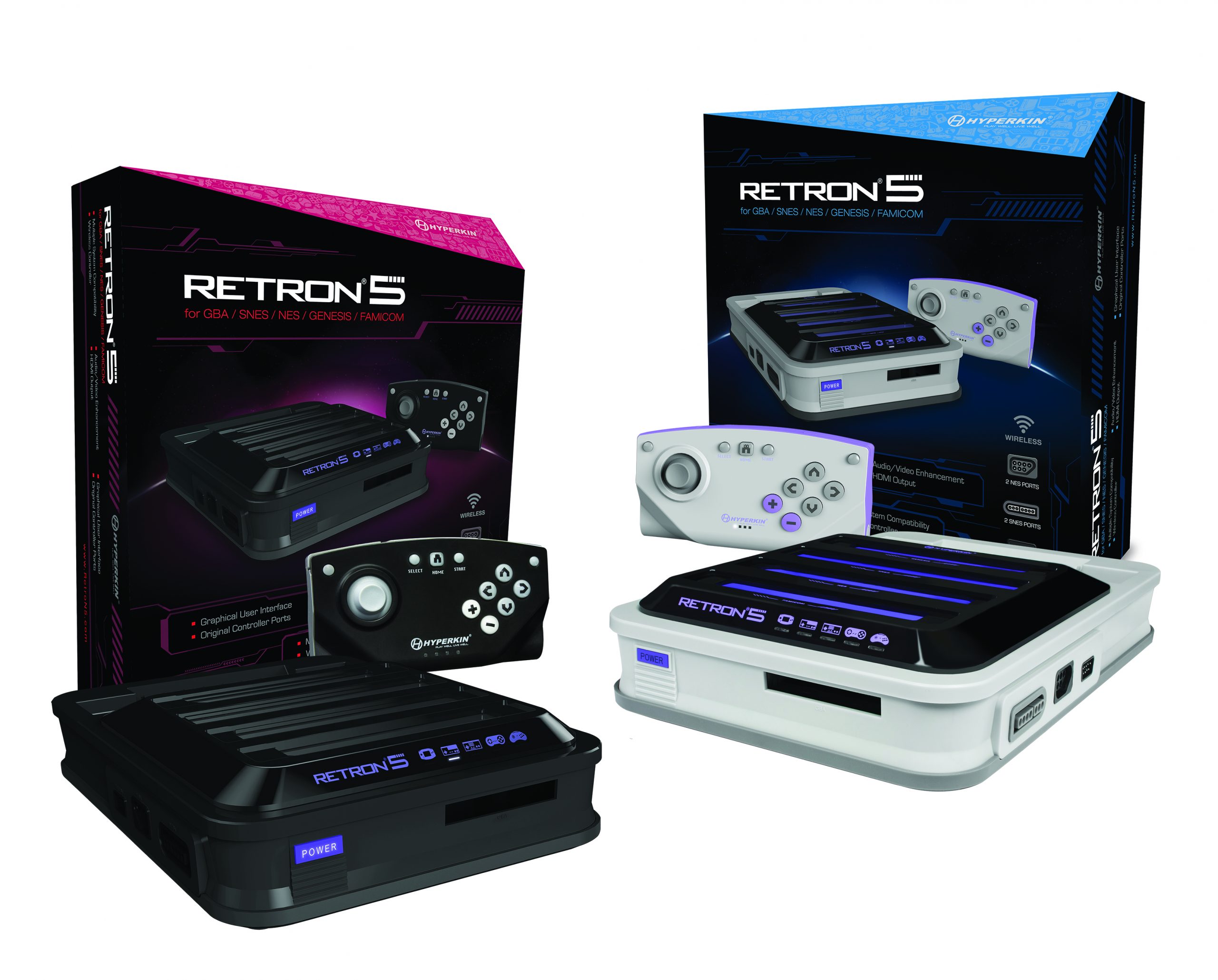 Avis à tous les amateurs de jeux rétro et aux collectionneurs qui ont des centaines de vieilles cartouches qui traînent, la console de vos rêves sera bientôt disponible en Europe ! Conçue par Hyperkin, la RETRON 5 est une console qui lit les cartouches PAL et NTSC de NES, SNES, Famicom, Super Famicom, Megadrive, Genesis, Master System, Gameboy, Gameboy Color et Gameboy Advance, en plus de supporter les puces FX et CIC, rien que ça.
