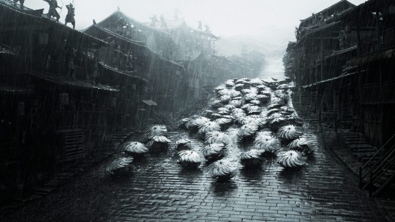 Quand j’avais vu pour la première fois le film Shadow de Zhang Yimou, j’avais été épaté par la direction artistique du film, tout comme la trame sonore. Est-ce que c’est toujours le cas ? Tellement ! Mais comme tout bon film que l’on revoit, l’effet de surprise est appauvri, surtout si ça ne fait que quelques semaines ou mois que l’on a vu le film. Outre ça, le film reste une belle poésie visuelle et sonore ! J’ai bien aimé revoir les combats, malgré le fait qu’ils sont courts dans le film.