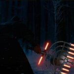La séquence est symbolique : on peut y voir le Jedi obscur de dos, avançant dans la pénombre de la forêt et sous la neige. Petite pause classe (comme dans tous les cahiers des charges dignes d’un film hollywoodien d’aujourd’hui), et on le voit enclencher son épée en deux temps. Une image non sans rappeler l’apparition de Darth Maul, dans le premier opus de le l’ancienne nouvelle trilogie : d’abord la lame, ensuite les bout de la garde.