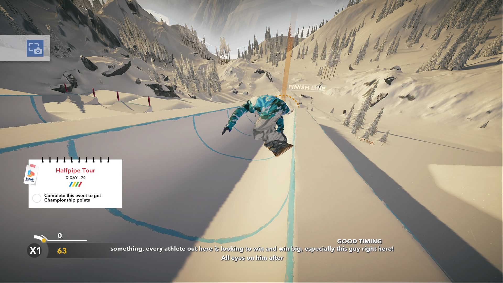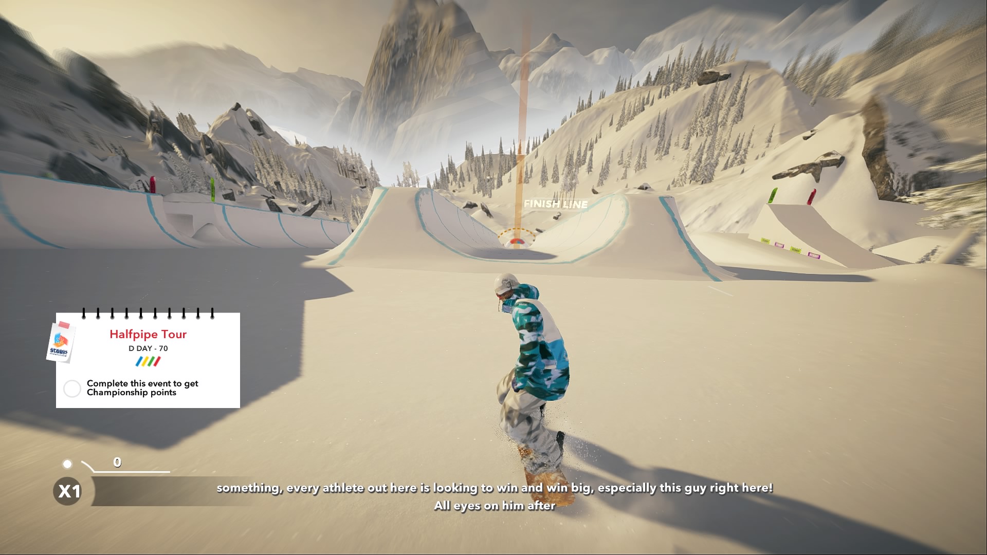 Cette fois, Road to the Olympics prend le chemin inverse. En effet, la totalité du contenu est axé sur la compétition et les épreuves olympiques. Il est certain que pour conserver un peu l’esprit de Steep, une emphase particulière est mise sur les épreuves ayant des origines en sports extrêmes tels que la demi-lune (halfpipe), le slopestyle et le big air.