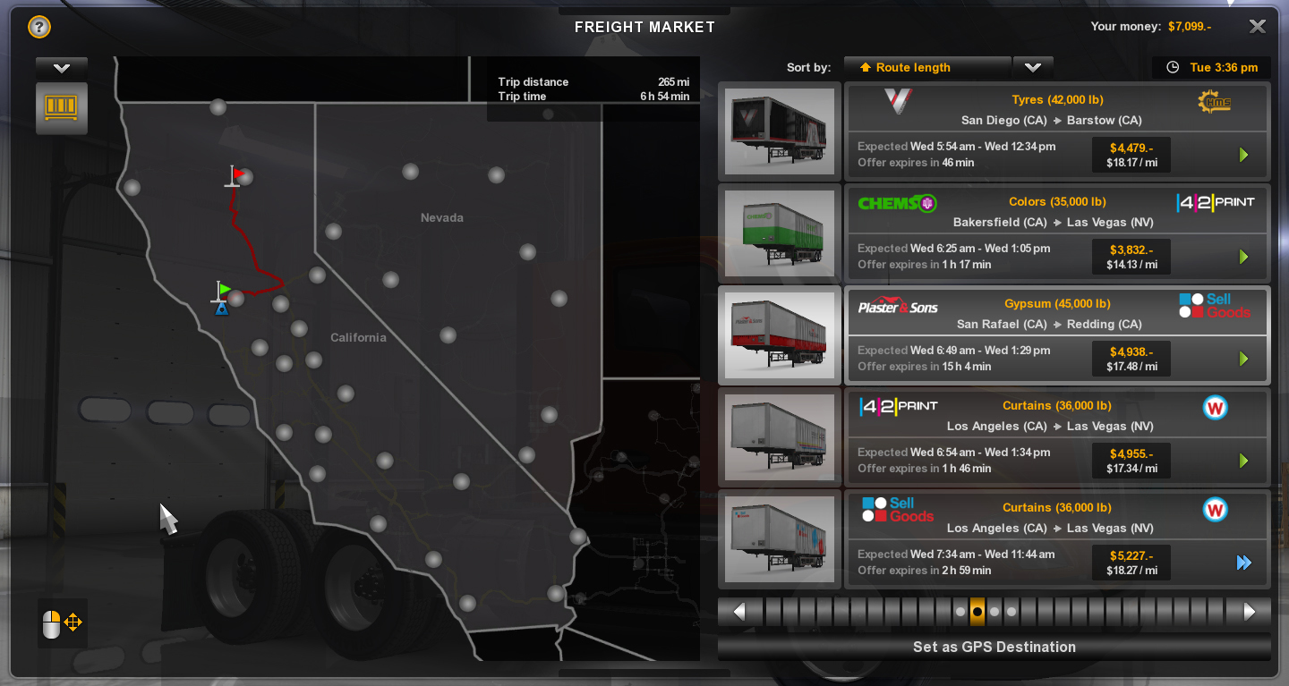 L’une des principales différences avec son cousin européen réside sans doute dans les types de véhicules disponibles qui sont uniques à l’Amérique. Autre changement lorsque l’on travers l’océan c’est la fin des routes sinueuses et le début des longues routes perpendiculaire situé à l’ouest des États-Unis. D’ailleurs, il faut noter que, pour le moment, il n’y a que 2 états disponibles et qui sont reproduits à l’échelle dans American Truck Simulator. Le joueur doit donc faire ses voyages entre la Californie et le Nevada.