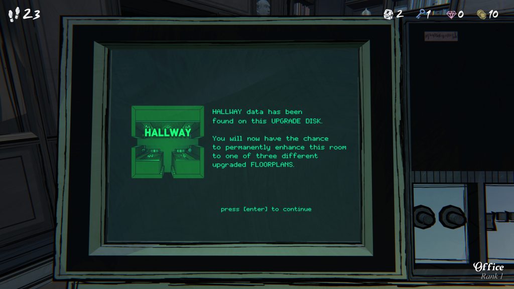 Blue Prince n’est pas non plus un jeu difficile a proprement parlé. Tout au long de notre exploration, il est possible de déverrouiller certaines améliorations permanentes. Celle-ci est, en fait, nécessaire pour terminer le titre. Cependant, il va falloir faire des recherches pour les retrouver. C’est ce que j’ai beaucoup apprécié de mon expérience. Je n’ai pas eu l’impression d’être devant des énigmes trop difficiles. En utilisant un bloc-notes (ce qui est d’ailleurs suggéré par le studio), nous pouvons progresser petit à petit. C’est pour cela que j’indiquais un peu plus tôt qu’il était très difficile de déterminer la durée de vie du titre. Chaque joueur va avancer à son rythme.