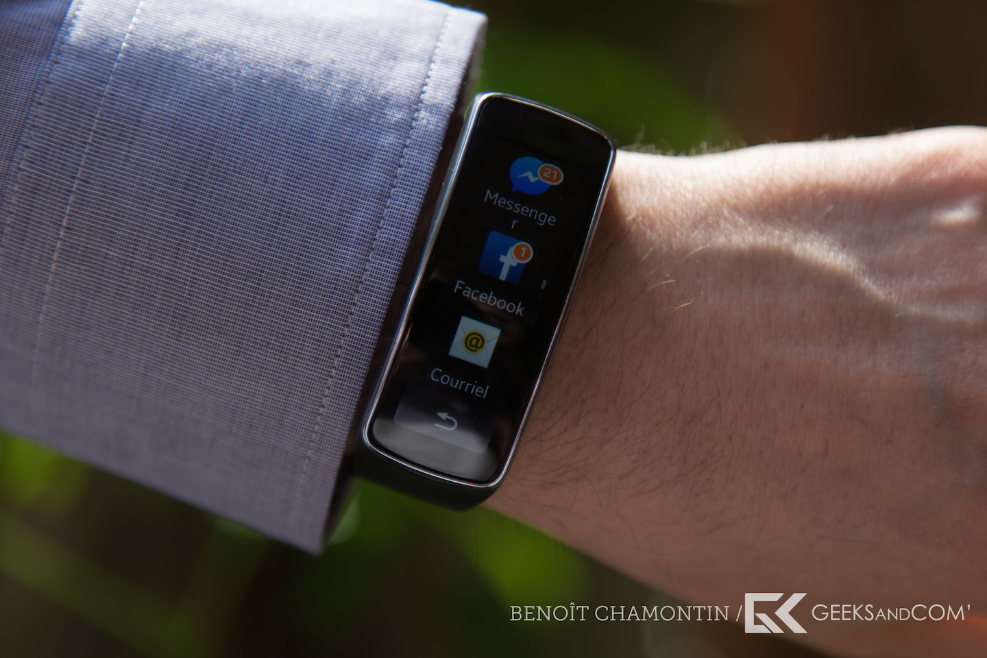 L’écran est donc très beau sur le Gear Fit, mais laisse un arrière-goût amer à cause du logiciel embarqué sur le bracelet, qui ne semble pas en tirer réellement partie.