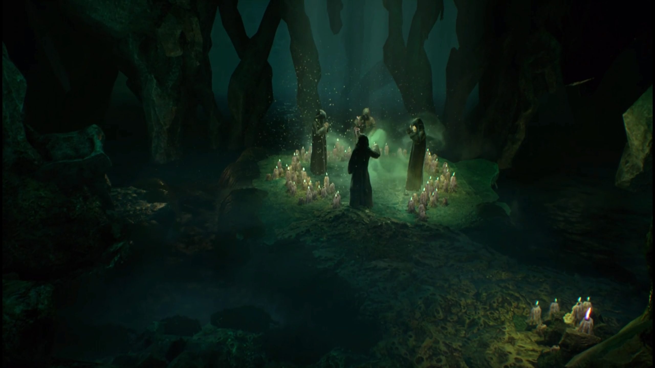 C’est autour de ce principe que le jeu tourne. Il y a différentes choses qui vont venir jouer avec la santé mentale d’Edward. Par exemple, plus vous découvrez des reliques, des tableaux ou des indices qui sont en lien avec le culte, plus vous risquez d’y croire. Il y a donc ce couteau à double tranchant qui veut nous encourager à explorer et tout découvrir, mais qui risque aussi d’affecter négativement le personnage. Il y a des vérités qu’on préfère laisser enfouies, mais il faut éventuellement les déterrer pour connaître la vraie histoire. Bref, le scénario nous entraîne complètement dans sa folie et c’est une des meilleures trames narratives parues cette année. Enfin, les multiples fins possibles vont satisfaire votre besoin de voir vos décisions avoir différents impacts. Ce sera à vous de décider laquelle est la plus appropriée.