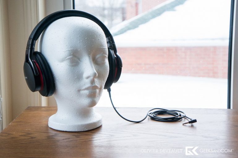 Sur ma tête d’ogre, le MDR-1A s’avère très confortable. Il possède une bonne masse, sans être trop lourd; il serre adéquatement la tête pour rester bien en place mais pas assez pour être douloureux. Puis, excellent point, celui-ci est parfaitement confortable même pour un binoclard comme moi.