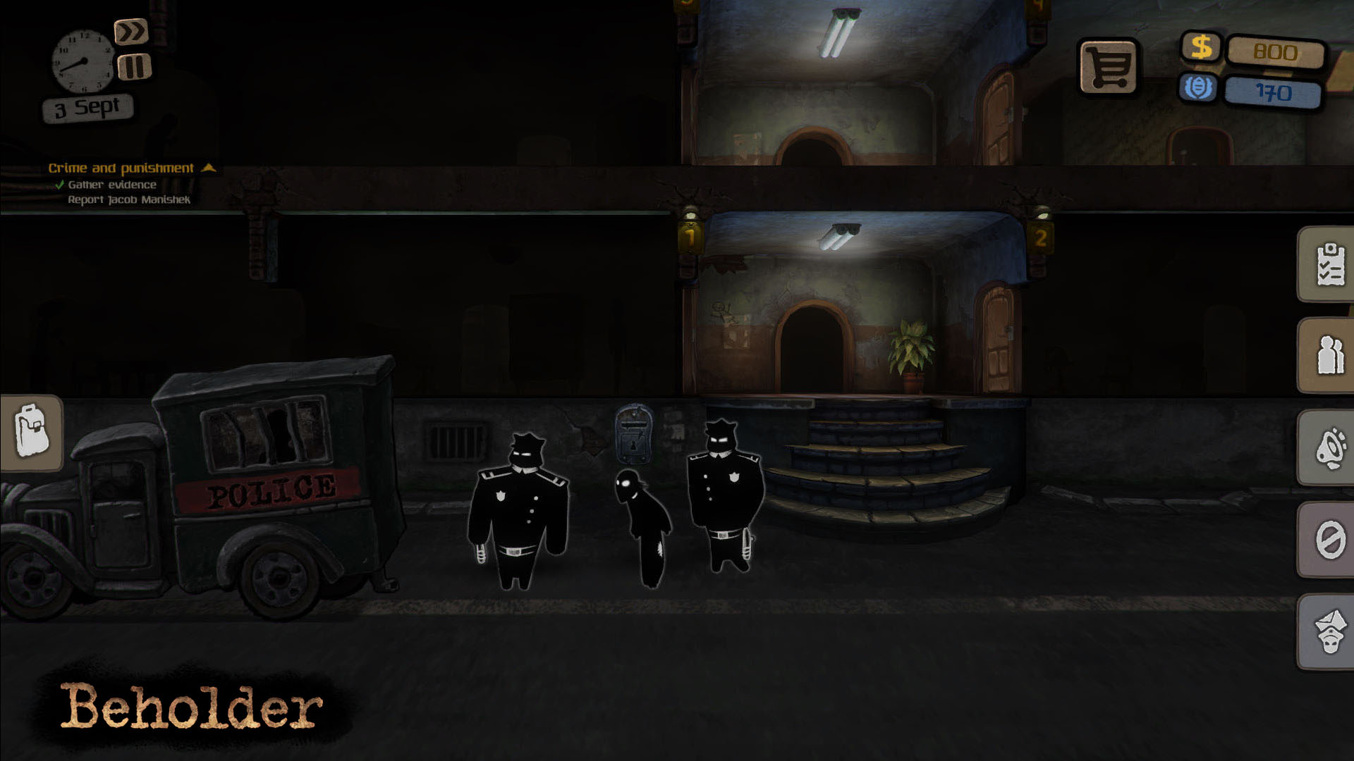 Pour ceux qui cherchent un jeu qui va leur proposer un très bon défi, je crois que Beholder va très bien les servir surtout si vous aimez bien jouer au détective. Soyez prêt à faire quelques erreurs que vous allez regretter et assurez-vous simplement d’apprendre de celles-ci pour tenter d’éviter un problème similaire dans le futur. L’accumulation de l’argent et des points de réputations est au centre de Beholder et si vous êtes capable d’être rapide sur votre souris, vous allez pouvoir maximiser les mouvements de votre personnage puisque chaque mission est minutée. De plus, durant votre aventure vous allez découvrir qu’il est parfois facile de prendre des raccourcis pour obtenir les items souhaités au bon moment, mais il existe généralement une alternative. On peut aisément décider de se tourner vers le vendeur pour acheter les matériaux requis, mais si on prend plutôt le temps de chercher dans les appartements vous allez peut-être sauver un peu de vos précieux sous.