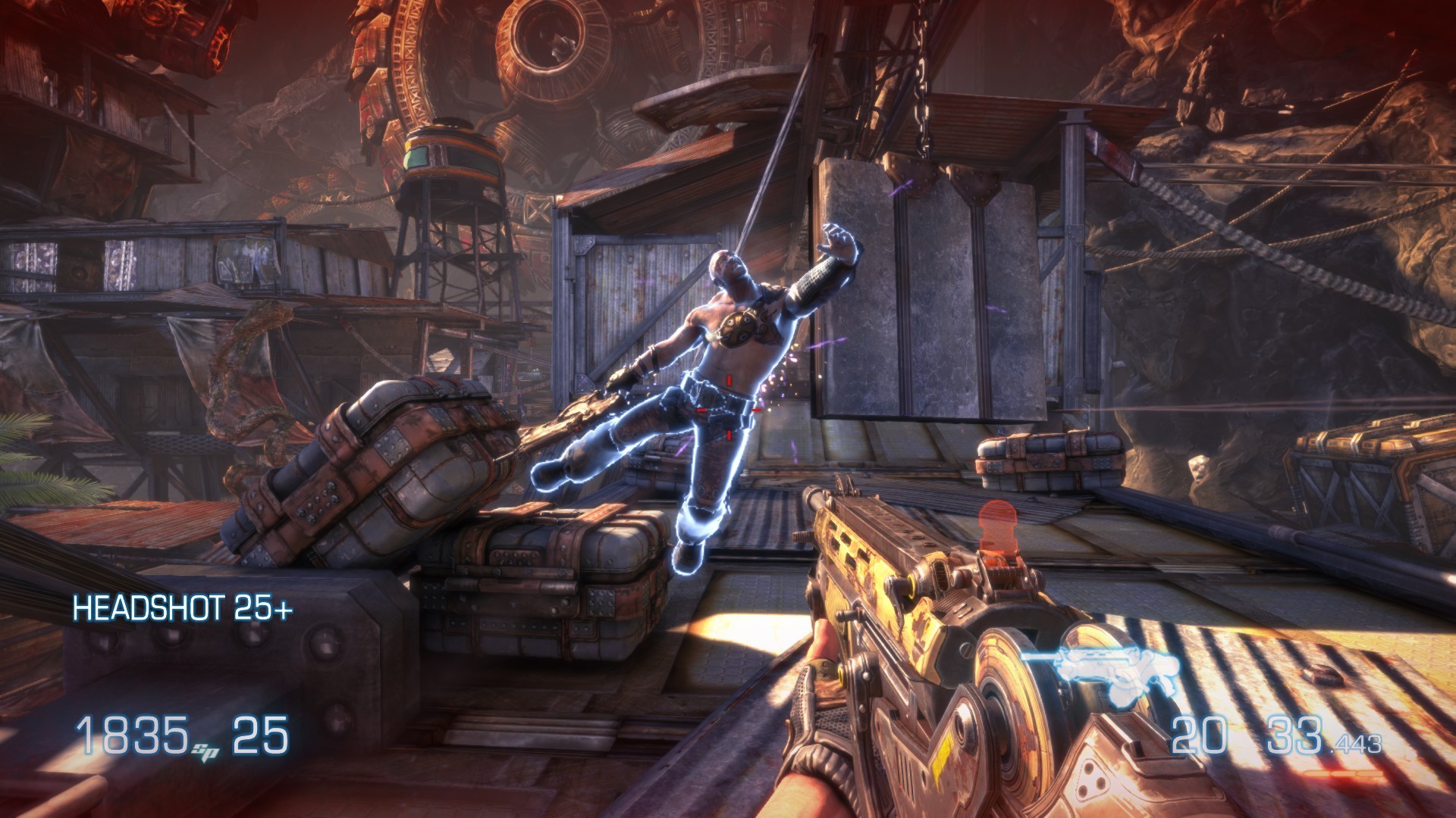 Qui dit remasterisation dit amélioration graphique. Il est vrai que Bulletstorm : Full Clip Edition offre des textures affinées et un taux de rafraîchissement souvent supérieur à 60 fps. Cependant, certains bogues d’affichages de la version originale ne sont toujours pas réglés. De plus, le déblocage du taux de rafraîchissement cause certains soucis au moteur physique du jeu. Un point très désagréable lorsque nous tentons d’éliminer nos ennemis avec style et qui peut facilement causer la frustration chez le joueur. Même si ces bogues sont plutôt rares, du moins lors de mon test, ils peuvent gâcher l’expérience globale.