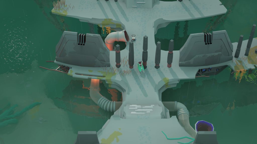C’est vraiment impressionnant de voir à quel point les casse-têtes sont variés et bien pensés, malgré cette limite d’un bouton. La perspective isométrique sert bien la mécanique de monde dans un monde et permet justement aux casse-têtes de se complexifier. Parce que oui, on ressent bien une progression au niveau de la difficulté en avançant dans l’aventure. D’ailleurs, ça devient assez complexe vers la fin et on peut vite se perdre et se désorienter un peu. Heureusement, après quelques instants et en réfléchissant bien, on finit par trouver notre chemin et continuer.