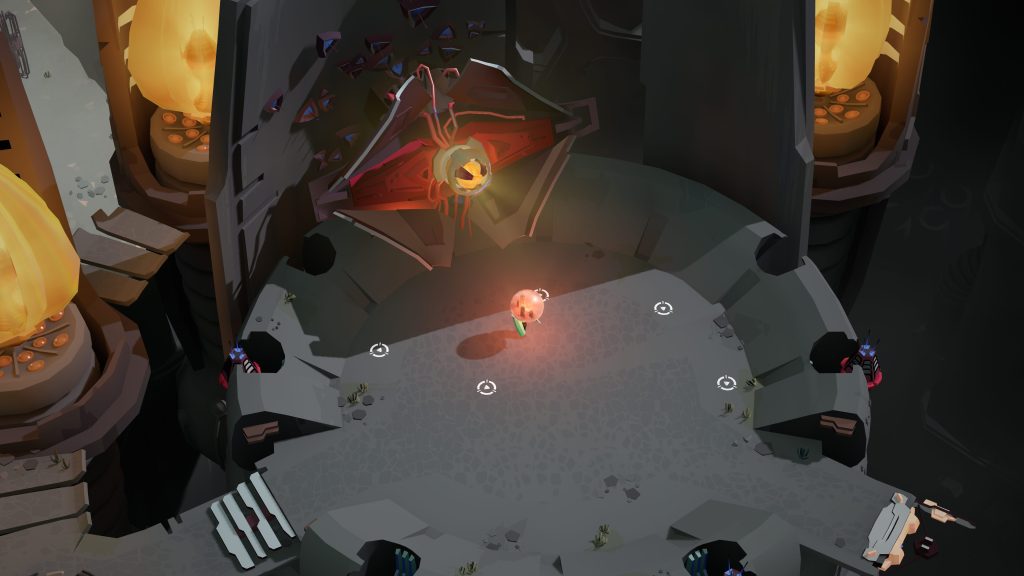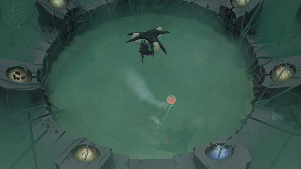 Or, c’est encore plus impressionnant lorsqu’on constate que Cocoon se joue avec essentiellement un seul bouton. Tout ce que notre habile petit insecte peut faire c’est ramasser/déposer ses orbes ou activer différents mécanismes. On ne peut pas sauter ni vraiment se battre contre les Boss qu’on rencontre. Tout ce qu’il faut s’est se déplacer adéquatement pour éviter leurs attaques et utiliser notre unique bouton pour activer le bon mécanisme dans l’arène. C’est difficile à expliquer en détail comme ça à l’écrit, mais c’est parfaitement exécutée sans jamais devenir ennuyant.