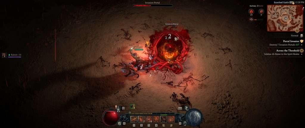 Une des créatures qui m’a le plus impressionné était le Realmwalker. Il s’agit d’un world event où une créature gigantesque qui porte un portail démoniaque sur son dos se promène pour répandre l’influence de Mephisto. Ainsi, il fait apparaître une multitude de démons autour de lui qui envahissent le territoire. Le Realmwalker va tranquillement faire son chemin à pas de géant et il est invulnérable durant cette période. Par contre, en éliminant les gardiens qu’il fait apparaître, on peut lui retrancher plusieurs points de vie.