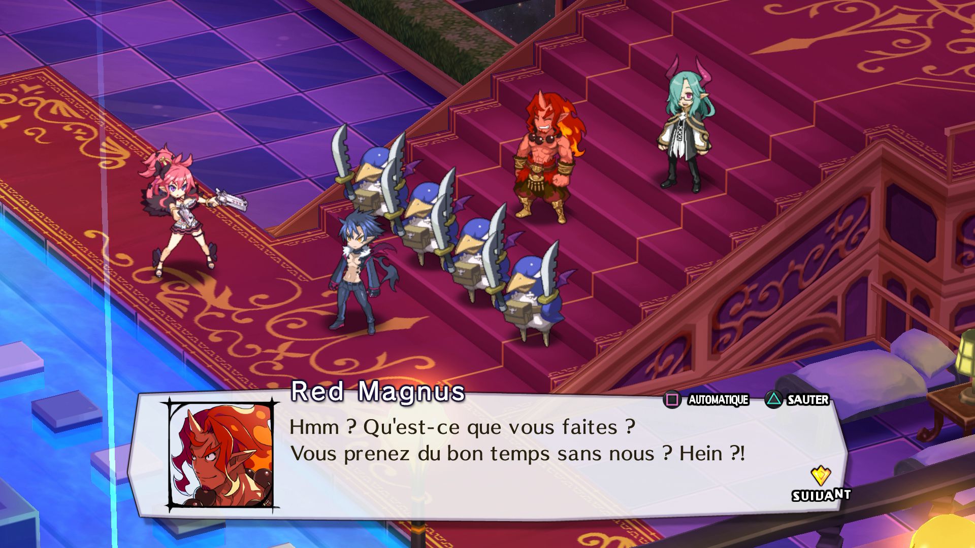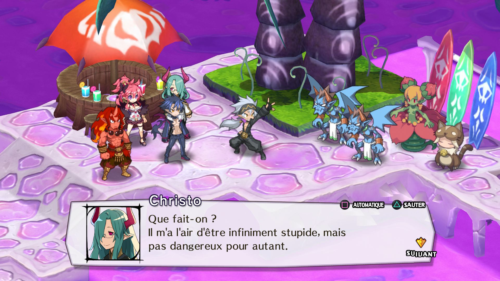 Un brin simpliste, le scénario de Disgaea 5 : Alliance of Vengeance et ses personnages peuvent se résumer à quelques lignes de textes, et ne sont que prétextes pour aller taper sur le voisin démoniaque. Le jeu fait la part belle à l’humour et aux clichés japonais avec moult situations cocasses et ironiques. Malheureusement, nous avons affaire au même type d’humour depuis voilà 12 années. Si ce dernier n’a pas baissé en qualité, force est de constater que cet aspect du jeu nous pousse à une lassitude latente, à de rares occasions heureusement.