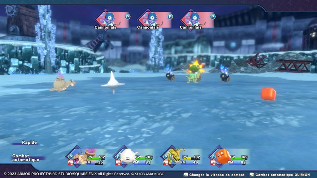 La jouabilité est relativement simple. On peut avoir jusqu’à quatre monstres en combat et quatre autres en réserve à interchanger en tout temps. Bien sûr, tous les extras vont à l’enclot et il n’y a donc pas de limite à les accumuler. Concrètement, les affrontements fonctionnent au tour par tour et on peut choisir les actions de chacun de nos monstres. Personnellement, j’ai assez rapidement ça redondant, alors le fait d’avoir l’option d’automatiser le tout est un gros plus. En activant, en plus, la fonction rapide, c’est la combinaison parfaite pour faire autant de grinding qu’on veut.
