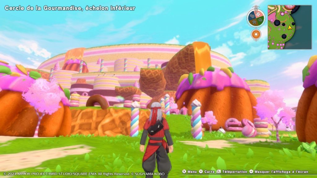 Durant l’aventure, on se promène à travers le grand univers de Nadiria en se téléportant avec la Tour de Rosecolline. Notre gentille elfe, Rose, se sert de ses pouvoirs pour téléporter la tour dans les différentes régions. Ça m’a grandement impressionné, parce que non seulement il y a beaucoup d’endroits, mais ils sont aussi très différents. Par exemple, à Cercle de la Gourmandise, tout est fait de bonbons et de gâteaux tandis qu’à Cercle de la Ténacité, tout est glacé et couvert de neige.