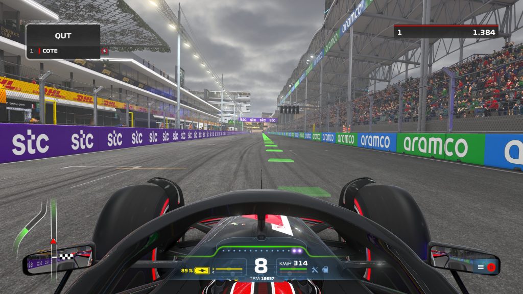Le plus important dans un jeu de course automobile concerne les sensations que l’on ressent au volant. Encore une fois, les développeurs de Codemasters ont effectué un bon travail sur ce F1 22. Les sensations sont certes semblables aux opus précédents, mais restent très fidèles à la réalité. Encore une fois, il y a de nombreuses options d’accessibilités pour adapter votre expérience selon l’aisance que vous avez ou encore selon votre expérience. L’intelligence artificielle a aussi eu droit à quelques améliorations alors qu’elle s’adapte plus facilement à votre comportement. Il est rare que je remarque ce genre de détails dans des jeux annuels, mais pourtant j’ai rapidement trouvé que mes adversaires étaient un peu plus intelligents. Il y aussi la possibilité de faire le tour de formation ou encore de tourner nous-mêmes le volant pour effectuer l’arrêt aux stands. J’ai cependant quelques réserves au niveau de la conduite des supercars. J’ai trouvé que peu importe le modèle, elles se conduisaient toutes de la même façon. De plus, le comportement de la voiture est beaucoup trop arcade à mon goût.