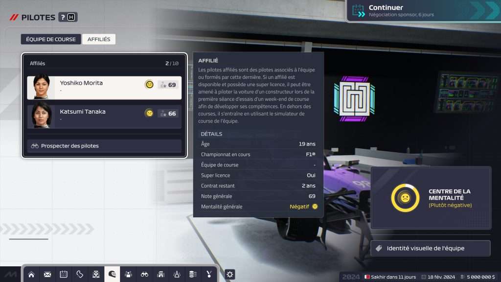 Le titre se veut le plus réalisme possible et donc vos pilotes affiliés peuvent très bien eux aussi négocier avec les autres écuries. Ce sera à vous de vous assurer que le moral est bon et de ne pas garder des pilotes trop talentueux sans leur donner un baquet. D’ailleurs ce système de mentalité affecte l’ensemble de votre équipe. Il est important de remplir les objectifs de chacun et d’écouter leur demande. Sans quoi, votre personnel pourrait quitter le projet.