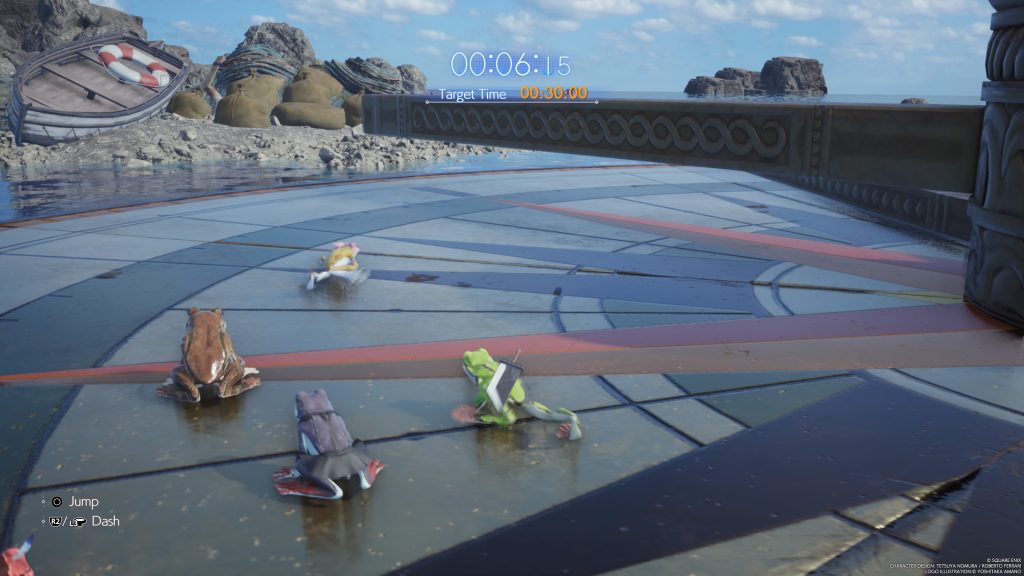 Du côté des courses de Chocobo, il y en a encore plus que dans l’original. Qui plus est, je trouve que les contrôles sont mieux exécutés. Avec le dérapage, j’avais l’impression de replonger dans mon Mario Kart préféré : Double Dash. D’autre part, je ne m’attendais pas à avoir un jeu de Fall Guys où on prend la forme d’une grenouille. Encore moins, une sorte de Rocket League avec Red XIII et des ballons de soccer géants. Il n’y en a pas un seul que je n’ai pas apprécié. Pour moi, c’est une réussite sur toute la ligne.