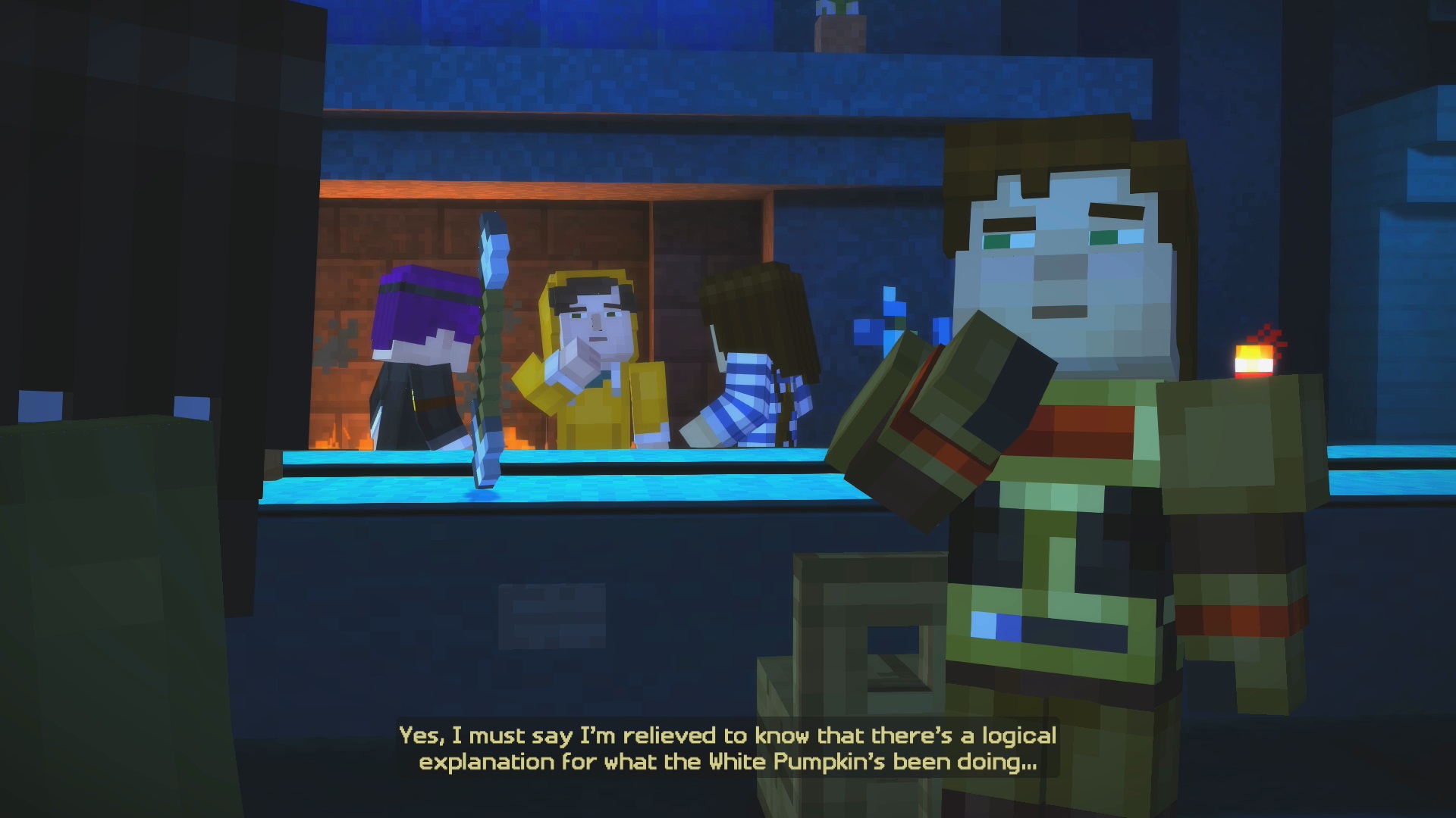 Après avoir réussi à vaincre le Wither Storm, Jesse et ses amis se retrouvent une nouvelle fois dans un monde totalement inconnu. A Portal to Mystery permet de retrouver le groupe alors que ce dernier est attaqué par une horde de zombies. Tentant de s’échapper de cette menace, nos amis se retrouveront tout juste devant une drôle de maison. C’est à ce moment que le scénario débute réellement. Nos personnages se retrouvons coincé à l’intérieur de cette maison alors qu’un l’un d’eux est un meurtrier. Le scénario reprend certains classiques des enquêtes meurtrières et l’application de ces éléments à Minecraft est très intéressante. Vous venez, donc, un détective qui devra lui-même rassembler les pièces de ce casse-tête pour trouver le coupable de cette énigme. Bien entendu, je vous laisse découvrir par vous-même la suite de l’histoire que vous proposent les développeurs de Telltale Games.