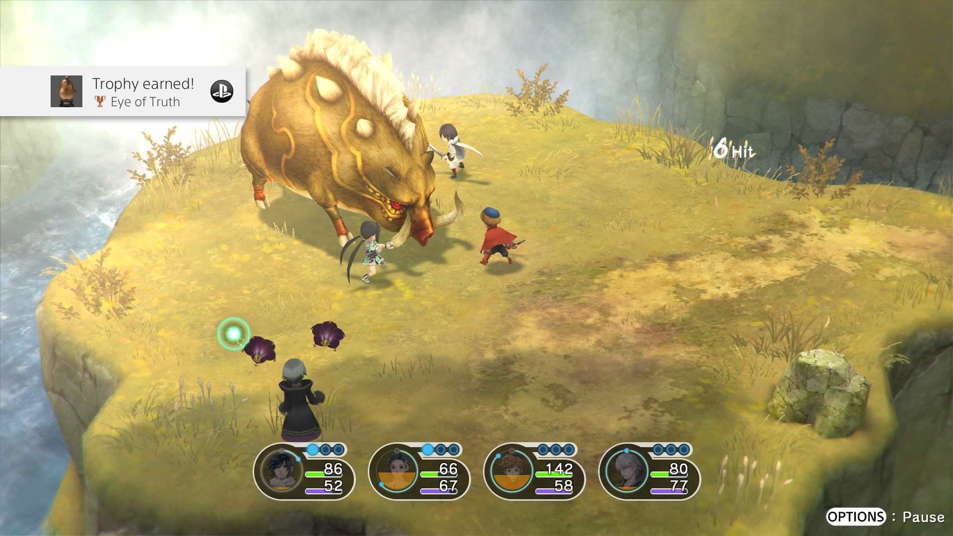 Pour ce qui est de la difficulté générale de Lost Sphear, c’est un peu inégal à mon avis. La plupart du temps, on passe les étapes du scénario assez facilement et sans heurts. Les zones d’exploration où l’on retrouve des monstres sont faciles et nous n’avons pas vraiment besoin de penser quelle sera notre stratégie. C’est bien différent quand vient le temps d’affronter les boss qui sont généralement assez difficiles voir frustrants avec des attaques tuant d’un seul coup nos personnages. D’autant plus qu’avec le système de combat actif, nous n’avons pas toujours le temps de prévoir l’arrivée de ce type d’attaque dévastatrice.