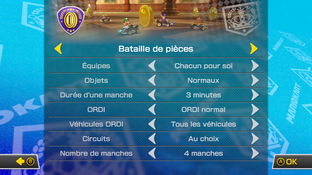 - Bataille des pièces : Des pièces sont placées sur le circuit, le joueur qui possède le plus de pièce à la fin du temps gagne.
