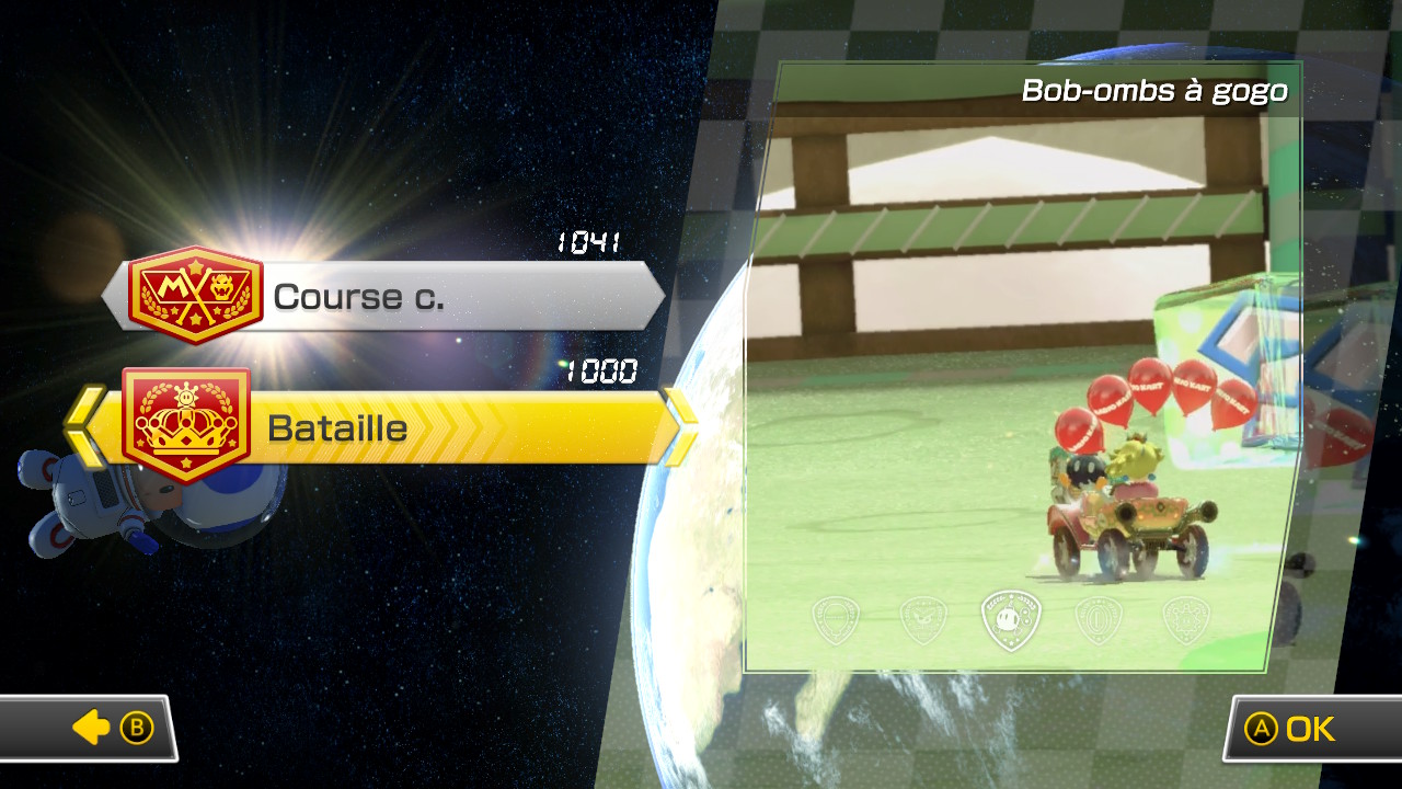 Évidemment, il aurait été dommage de la part de Nintendo de nous offrir une nouvelle édition de Mario Kart sans quand même apporter une petite touche de nouveauté. Une des grandes nouveautés de ce Mario Kart est sans contredit le mode Bataille qui a subi son lot de changement et d’ajout. On se rappelle que la version originale du jeu était très maigre en termes de contenu de Bataille, offrant aux joueurs de se battre dans les courses, ce qui n’avait pas fait l’unanimité. Aujourd’hui, on y découvre cinq modes très différents les uns des autres qui vont plaire à tous :