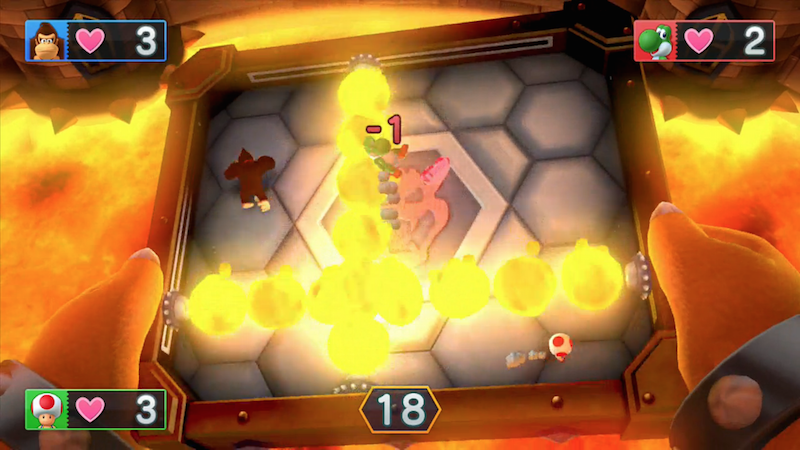 Dès que Bowser atteint le groupe, un mini-jeu commence. Comme pour le mode Amiibo, Bowser doit éliminer tous les joueurs afin de gagner le mini-jeu. Malgré une diversité intéressante, certains mini-jeux avantagent les joueurs et d’autres donneront une victoire assurée à Bowser. De ce fait, j’ai trouvé mon expérience inégale et un peu décevante, peu importe le type de groupe d’amis avec lesquels j’ai essayé le jeu…