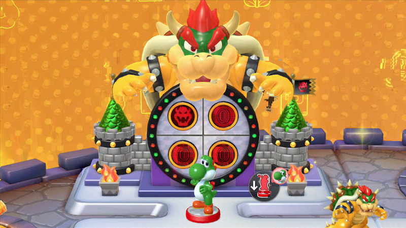 Il est amusant d’incarner Bowser et de voir les dés dans sa main sur le Gamepad. Pour lancer les dés de Bowser, il suffit de lever rapidement de Gamepad vers le haut. Ce qui est frustrant est que peu importe le nombre de cases que les quatre joueurs ont réussi à obtenir, Bowser les rattrapera coûte que coûte. Même si ce dernier ne réussit pas à obtenir un chiffre de dés assez haut même avec quatre dés, Bowser Junior lui en fournira un cinquième!!! De ce fait, il est très difficile d’éviter Bowser.