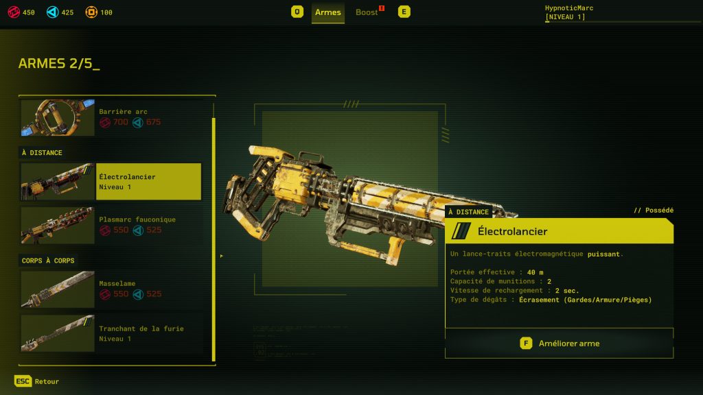 Tout au long de votre aventure, il sera aussi très important d’améliorer votre équipement, vos pièges, etc. Meet Your Maker propose une sorte de hub dans lequel il sera possible de choisir sa prochaine mission, mais aussi d’améliorer nos éléments. On peut, donc, avoir des pièges plus puissants pour nos avant-postes, une armure plus résistante, des armes plus puissantes ou acheter de l’équipement secondaire comme des grenades. Les ressources demeurent, cependant, assez rares et il faudra enchaîner plusieurs niveaux sans dépenser si on souhaite améliorer un équipement en particulier. J’aurai aimé avoir un peu plus de récompenses, mais c’est quelque chose qui pourra facilement être rééquilibré par l’équipe de développement.