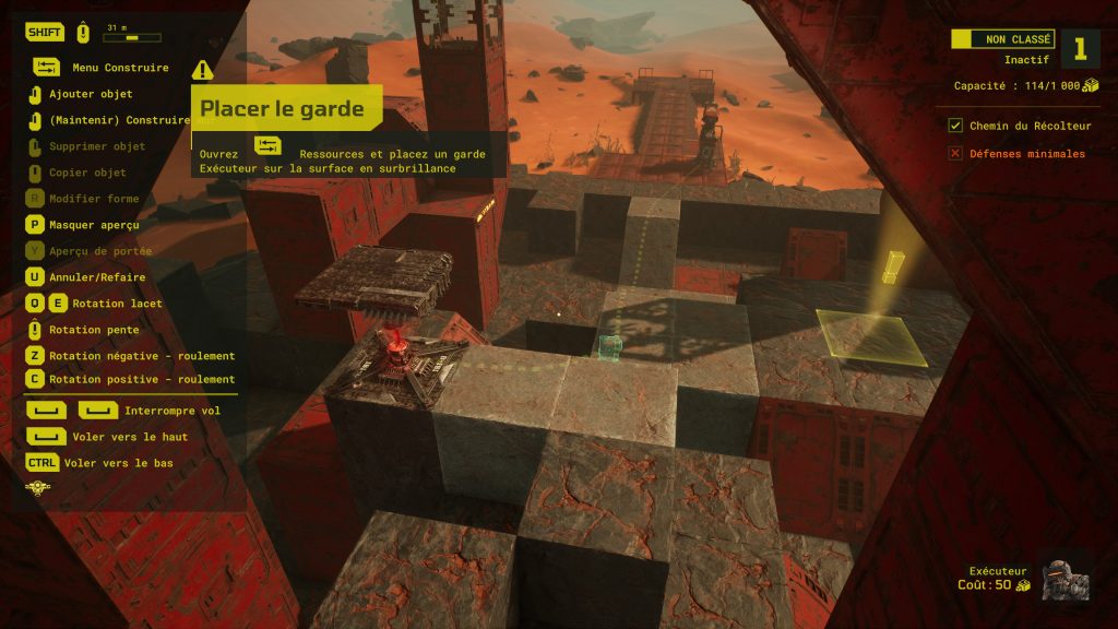 En plus des avant-postes des autres joueurs, Meet Your Maker permet de créer son propre avant-poste. La création de celui-ci permet aux autres personnes d’essayer votre niveau, mais aussi de récupérer des bonus pour chacune de leur mort. Il n’est pas possible de créer des niveaux à l’infinie, car chacun d’entre eux nécessite une ressource particulière. De plus, chaque avant-poste à une limite de bloc et de piège/garde que l’on peut placer. Il faut aussi terminer son propre niveau afin de confirmer qu’il est possible de le finir. Une fois toutes ces étapes terminées, on peut partager notre avant-poste et simplement attendre que d’autres joueurs meurent en essayant de récupérer du MatGen. J’ai trouvé très agréable que les développeurs de Behaviour Interactive ne punissent pas les créateurs. Même si vos adversaires récupèrent des ressources dans votre avant-poste, vous ne perdez absolument rien et n’êtes pas pénalisé. Une bonne manière de motiver les autres à créer.