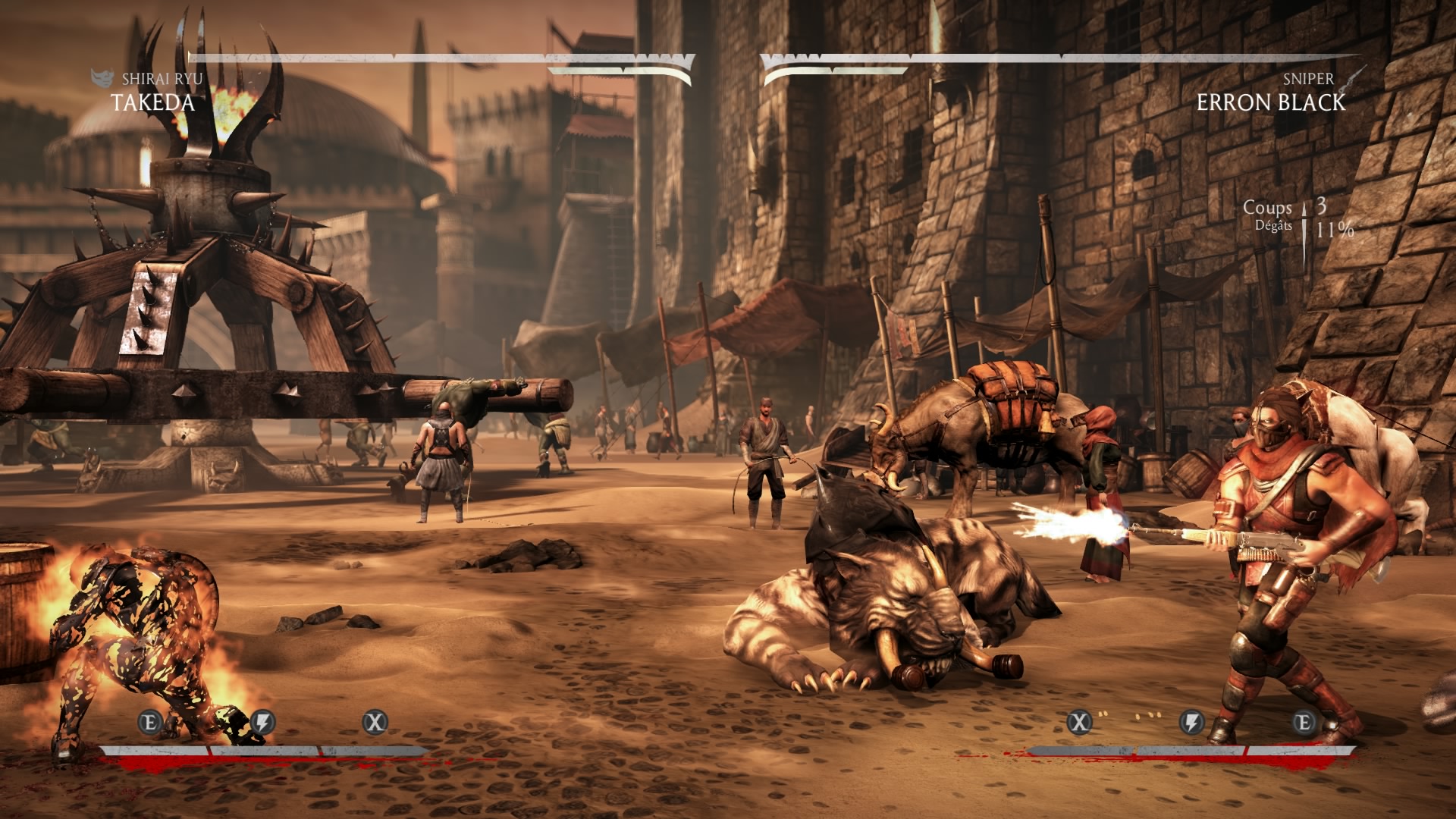 La barre d’X-Rays fait bien sûr son retour et comme dans MK9 cette barre vous servira à améliorer vos coups spéciaux au premier stade, à casser le combo de vos adversaires au deuxième et bien sûr le troisième stade permet de faire votre X-Ray qui cassera les os de votre adversaire et enlèvera 1/4 de la vie de votre adversaire.