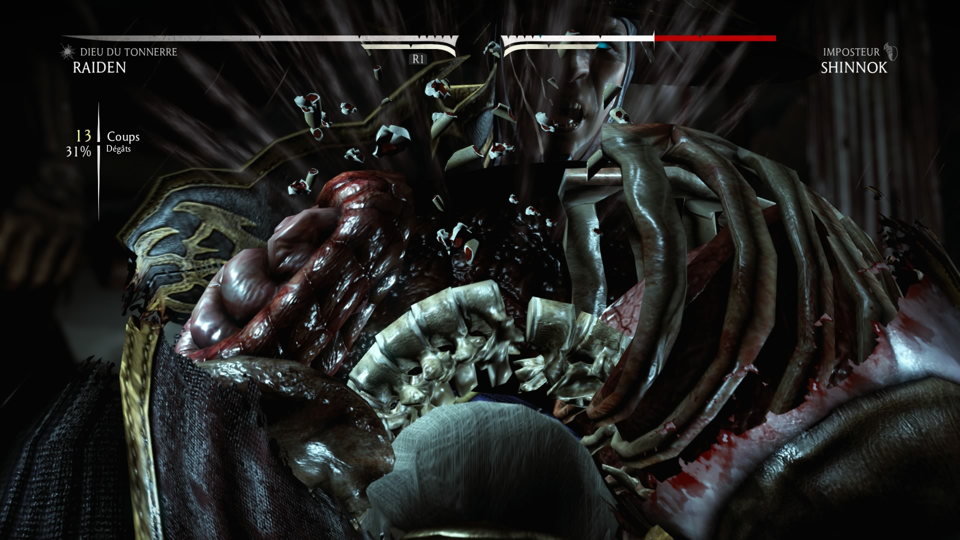 Outre les décors, c’est aussi au niveau des personnages que le bond graphique se ressent car l’anatomie entière des personnages a été modélisée, du squelette jusqu’à l’intérieur des muscles, ce qui donne des X-Rays et Fatalités bien gores et très détaillés. Mention spéciale aux kombattantes qui ont des proportions beaucoup plus réalistes et moins vulgaires que dans Mortal Kombat 9.