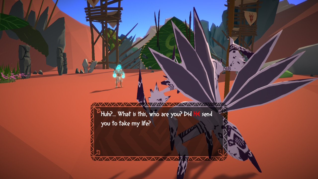 De région en région, présentées comme étant des environnements ou mondes distincts, Mulaka tentera de vaincre le monstre principal et responsable de la corruption des lieux. Bien que les différents demi-dieux et monstres aperçus pendant notre aventure sont issus de la culture Tarahumaras, j’ai personnellement trouvé que le contexte et le scénario ne lui rendaient pas justice. En fait, le scénario est tellement mince et les dialogues entre les personnages et Mulaka sans saveur, que la seule chose que l’on retient de l’aventure est de battre le monstre de la zone pour ainsi se rapprocher tranquillement vers la fin du jeu. Bien sûr, nous rencontrerons des divinités qui vous nous indiquer le chemin à suivre mais honnêtement, outre le pouvoir qu’ils confèrent au héros, leur rôle est très minime dans l’histoire.